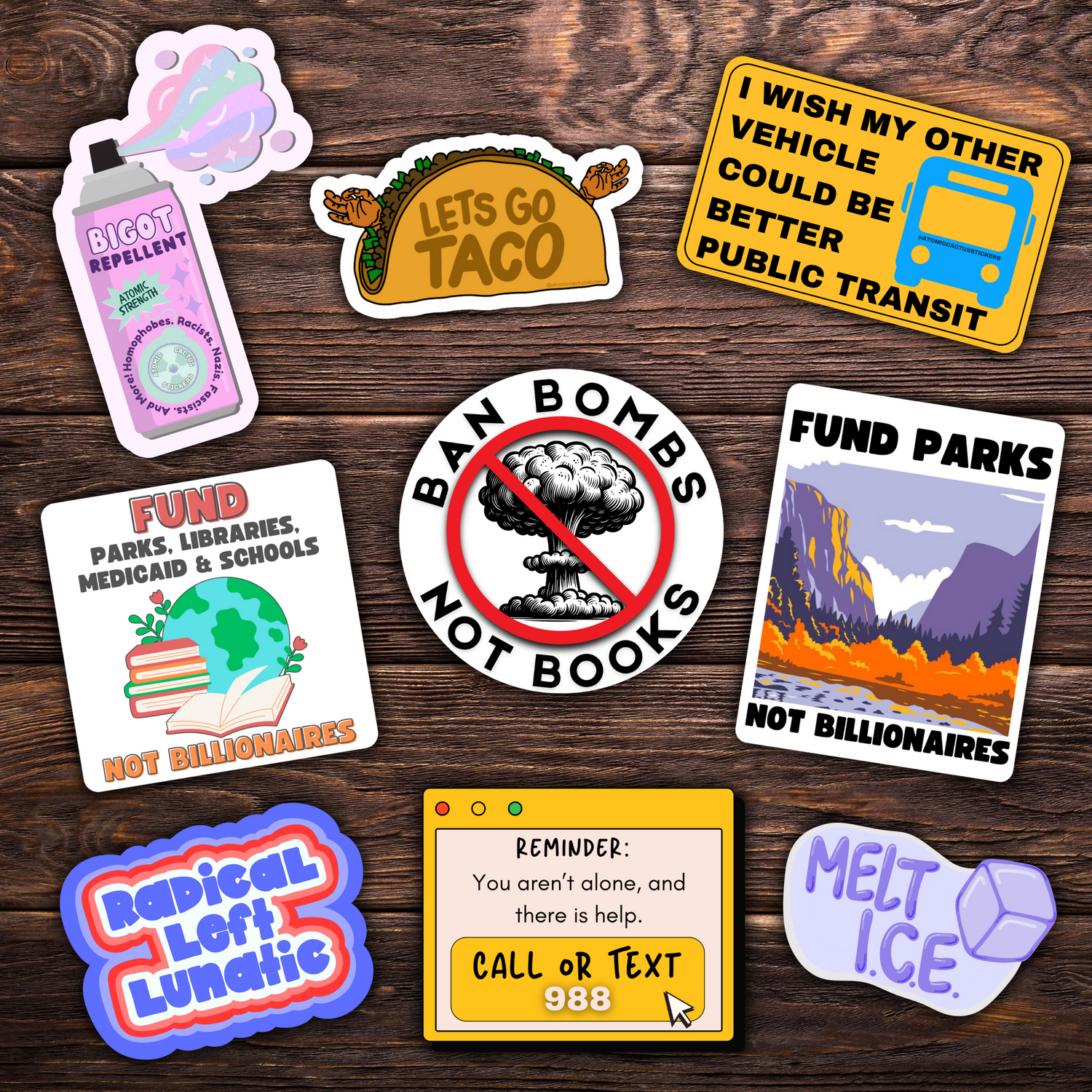 Anti-War Stickers | Ban Bombs Not Books, No New War But Class War, Know Peace Sticker | 3" x 3" Each | Vinyl Decals | Water-Resistant | Protest Pack