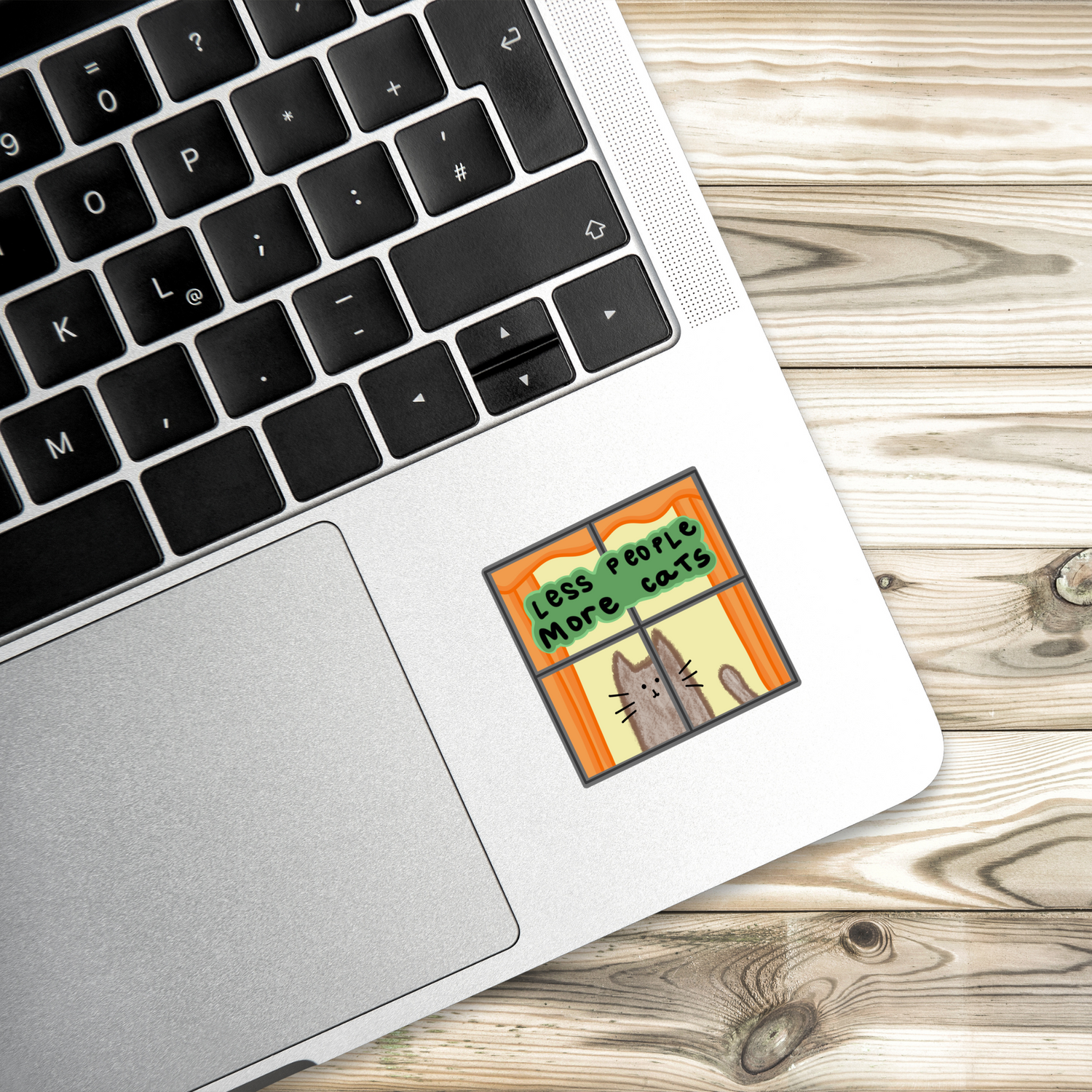 Less People More Cats Sticker | Hand Drawn | Vinyl Sticker | Cat Stickers | Novelty | Cute Cat Sticker