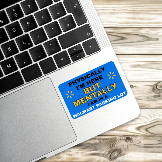 Physically I’m Here But Mentally I’m in a Walmart Parking Lot Sticker | 3" x 2.5" Vinyl Decal | Funny Existential Humor