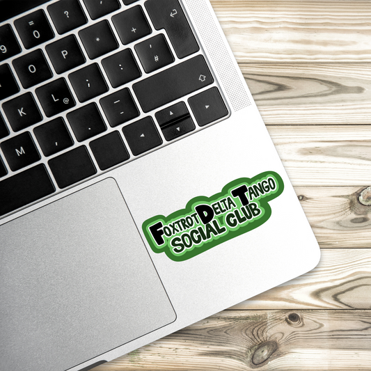 Foxtrot Delta Tango Social Club Sticker | 3" x 1" | Green | Vinyl Decal | Water-Resistant | Military Sticker