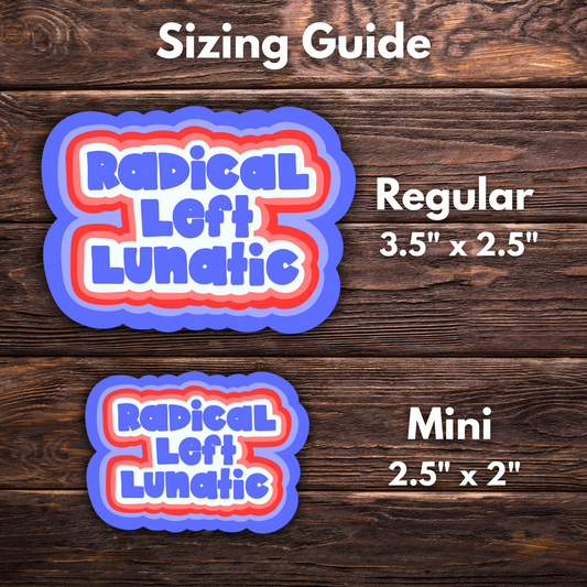 Radical Left Lunatic Sticker | 2 Sizes Vinyl Sticker | Hand-Drawn | Red White & Blue | Ironic Political Humor | Progressive Sticker