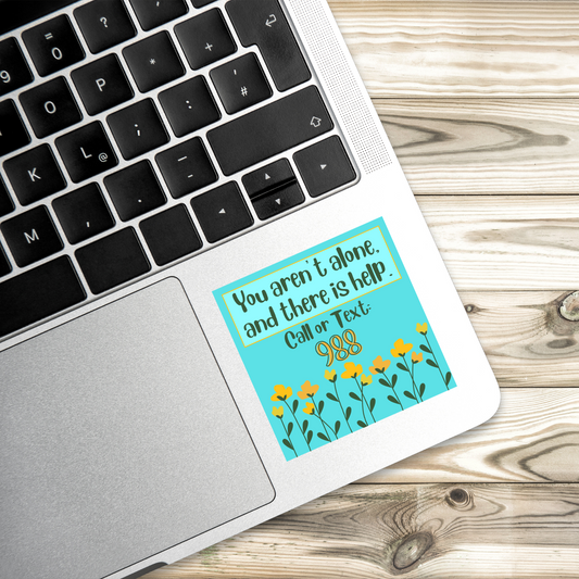 You Aren’t Alone – 988 Crisis Hotline Sticker | Mental Health Awareness Sticker | Suicide Prevention | Floral Vinyl Sticker